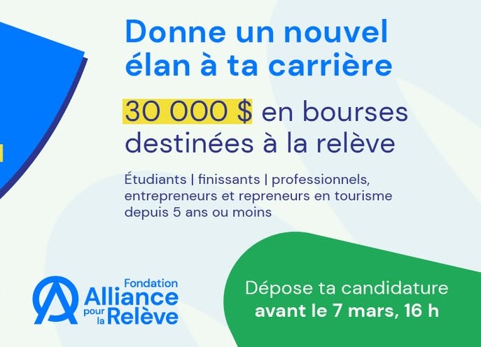 30 000 $ offert en bourses pour soutenir la relève en tourismeLa Fondation Alliance pour la relève lance avec enthousiasme l’appel de candidatures pour la deuxième édition de son programme de bourses. Fort du succès connu l’an dernier, le programme revient sous une formule bonifiée, venant soutenir plus que jamais la relève en tourisme du Québec. […]
