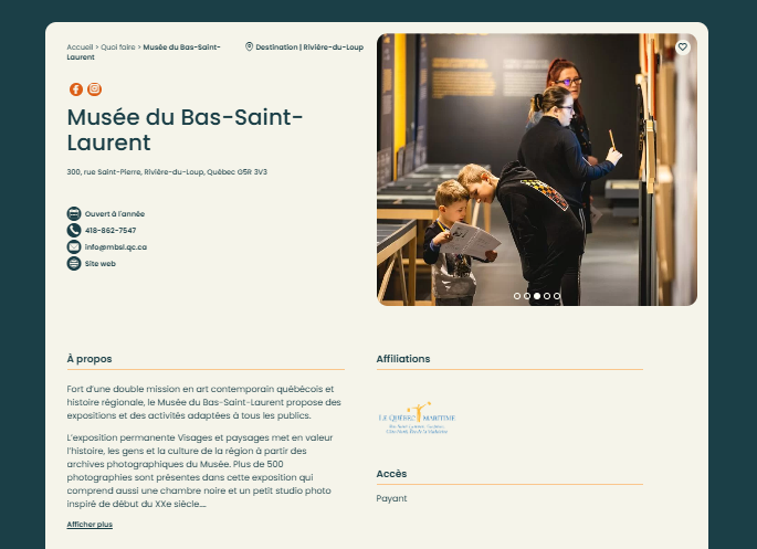 - Votre fiche sur le site BasSaintLaurent.ca.